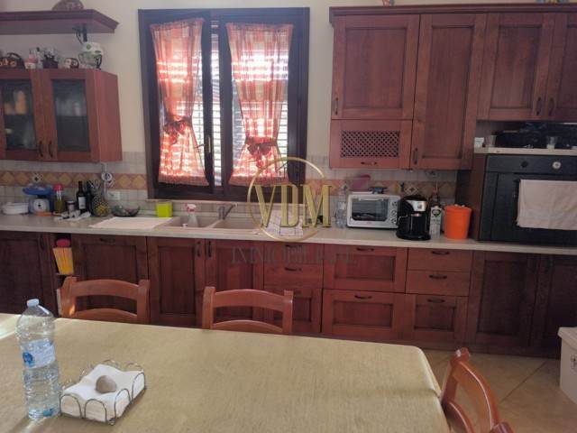 Continuing into the heart of the home, you discover an additional living area that opens into a large eat-in kitchen—the true centerpiece of the house—from which you can directly access one of the villa’s enchanting verandas. Every detail of the property has been carefully curated, from the elegant flooring to the high-quality interior doors, ensuring a refined atmosphere throughout.