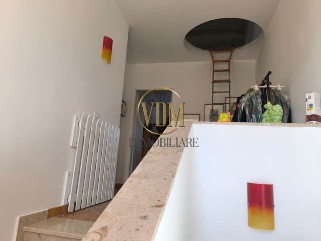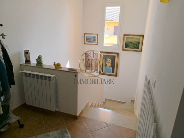 Una scala interna conduce al primo piano, dove la zona notte offre una camera matrimoniale, due camerette ideali per ragazzi o ospiti e un secondo servizio; proprio dalla camera padronale si accede a una splendida veranda che regala una vista panoramica mozzafiato.